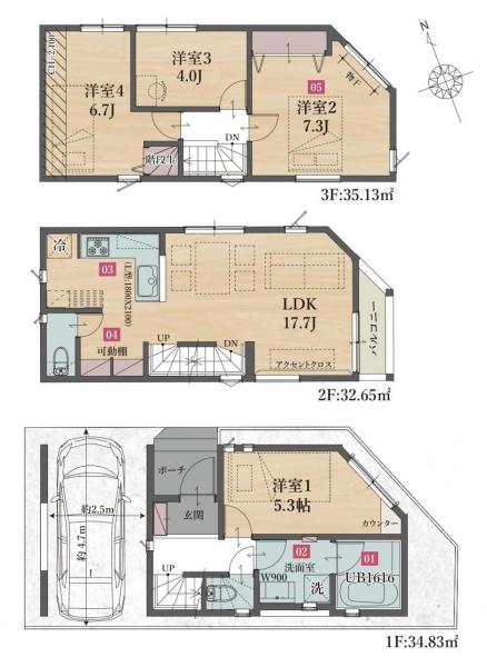 - 86.53~102.61m2(車庫面積10.74m2含)