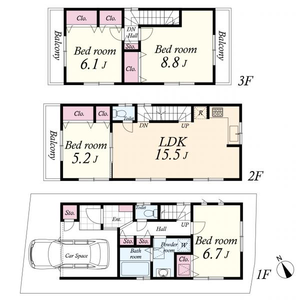 木造 地上3階建て