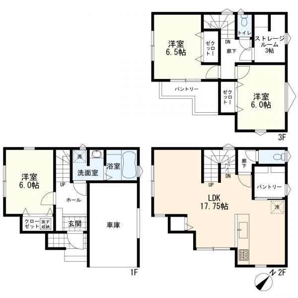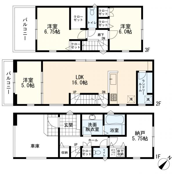 通風良好、低層住居専用地域、2沿線以上利用可、都市ガス、電気、下水道、対面式キッチン、システムキッチン、浴室に窓、バストイレ別、トイレ2ヶ所、室内洗濯機置場、独立洗面台、パウダールーム、収納、納戸、バルコニー、フローリング、全居室フローリング、LDK15帖以上、3階建以上