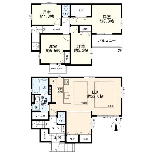 - トイレ2ヶ所,システムキッチン,浄水器,ウォークインクローゼット,床暖房,駐車場2台分
