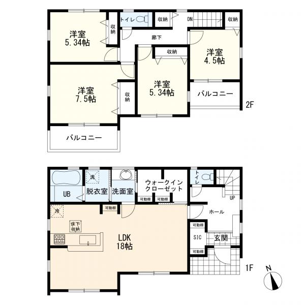 - トイレ2ヶ所,システムキッチン,カウンターキッチン,ウォークインクローゼット,床下収納,駐車場2台分