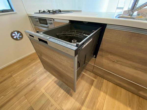 その他画像:1号棟 食器洗浄乾燥機を標準装備。作動中は他の家事を並行して進めることができ、家事の時短と負担軽減につながります。高温、高圧水流で洗浄するため、除菌・消臭効果が期待でき、衛生面での安心感が高まります。また、手荒れの心配もなくなります。