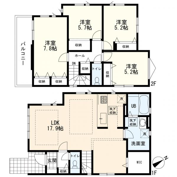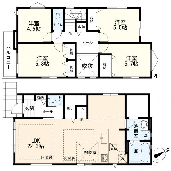 - トイレ2ヶ所,システムキッチン,ウォークインクローゼット,床下収納,複層ガラス,床暖房