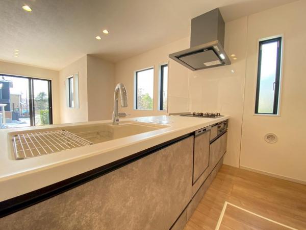 角地、2階建、LDK20帖以上、システムキッチン、対面式キッチン、食器洗乾燥機、床下収納、独立洗面台、トイレ2ヶ所、浴室に窓、ウォークインクローゼット、バルコニー、全居室フローリング、全居室収納スペース、給湯、バス1坪以上、バストイレ別、パウダールーム、室内洗濯機置場、複層ガラス、ペアガラス、Low-Eガラス、床暖房、リビングイン階段、年内入居可、陽当り良好、通風良好、小学校徒歩10分以内、スーパー徒歩10分以内、2沿線以上利用可、都市ガス、電気、上水道、下水道