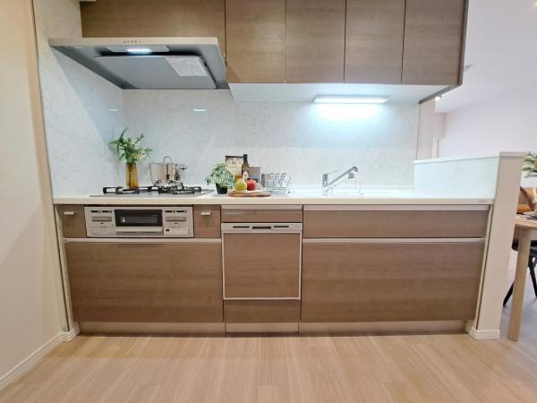 その他画像:食器洗浄乾燥機を標準装備。作動中は他の家事を並行して進めることができ、家事の時短と負担軽減につながります。高温、高圧水流で洗浄するため、除菌・消臭効果が期待でき、衛生面での安心感が高まります。また、手荒れの心配もなくなります。