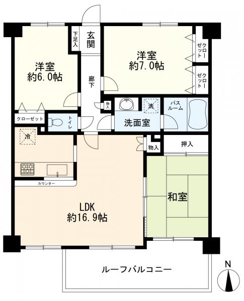 - 追焚機能,浴室乾燥機,システムキッチン,カウンターキッチン,給湯,室内洗濯機置場,エレベーター,宅配BOX,オートロック,ルーフバルコニー,駐輪場