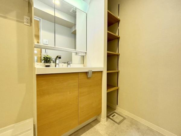 その他画像:可動棚付き収納を備え、タオルや洗剤ストックなどの置き場にも困りません。