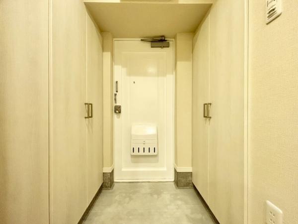 玄関:両面にシューズボックスを備え、十分な量の靴が収納可能。