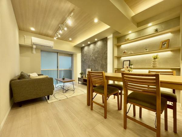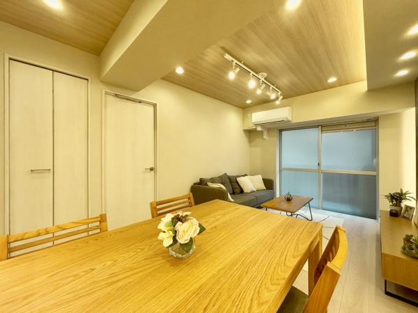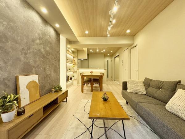 リビング:間接照明やスポットライトが備え付けられた、おしゃれなLDKです。