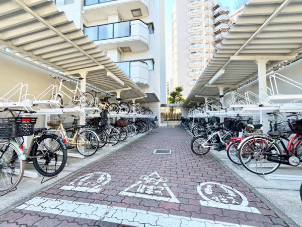 - 追焚機能,浴室乾燥機,システムキッチン,浄水器,ウォークインクローゼット,トランクルーム,給湯,室内洗濯機置場,エレベーター,照明器具,防犯カメラ,二面バルコニー,バイク置き場,駐輪場