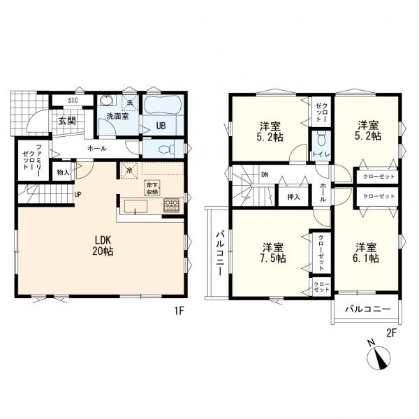 - トイレ2ヶ所,浴室乾燥機,システムキッチン,ウォークインクローゼット,床下収納,洗髪洗面化粧台,駐車場2台分