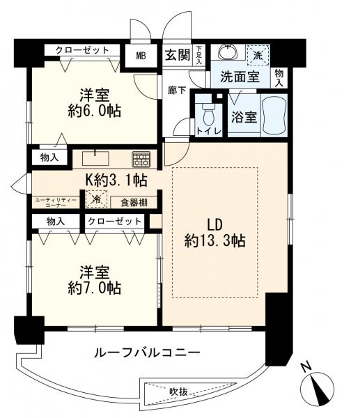 - 室内洗濯機置場,エレベーター,宅配BOX,エアコン,オートロック,防犯カメラ,ルーフバルコニー