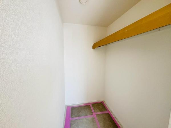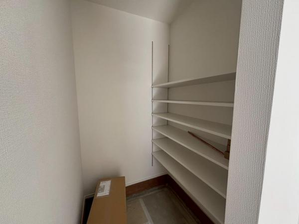その他画像:2号棟 シューズインクローゼット 玄関と隣接し、靴を履いたまま出入りできるSIC。靴はもちろん、散乱しがちな傘、お子様の外での遊具やベビーカーなどをスッキリと収納。お客様をお迎えする玄関をいつもキレイな状態にキープ。