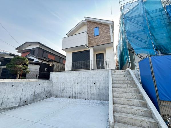 閑静な住宅地、都市近郊、市街地が近い、低層住居専用地域、整形地、スーパー徒歩10分以内、小学校徒歩10分以内、駐車場2台分、都市ガス、電気、上水道、下水道、食器洗乾燥機、対面式キッチン、システムキッチン、浄水器、省エネ給湯器、給湯、追焚き給湯、シャワー、浴室に窓、浴室暖房、浴室乾燥機、トイレ2ヶ所、温水洗浄便座、三面鏡付き洗面台、室内洗濯機置場、パウダールーム、ウォークインクローゼット、床下収納、玄関土間収納、バルコニー、全居室2面採光、シャッター雨戸、ペアガラス、床暖房、LDK20帖以上、リビングイン階段、手すり付き階段、2階建、省エネラベル、省エネルギー対策、ZEH水準