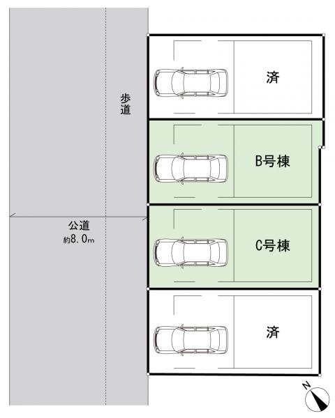- 建物面積内車庫部分約12.28m2含、前面道路8m(歩道含)