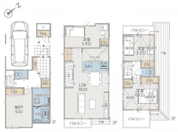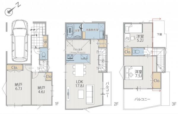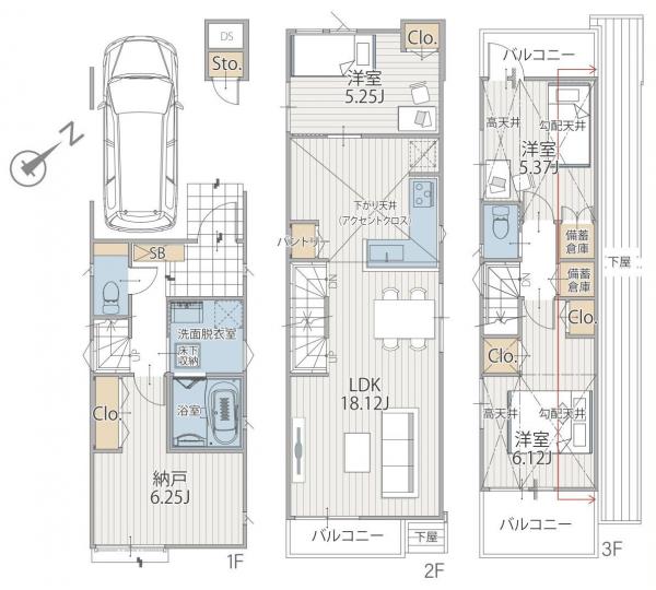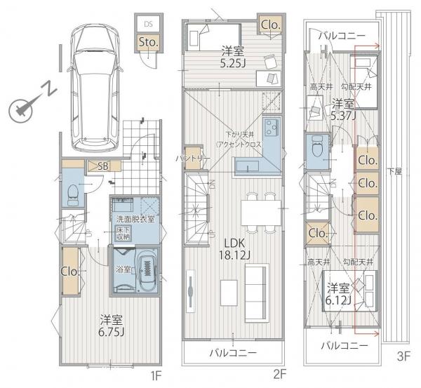 - 112.36~117.05m2(車庫面積12.42m2含)