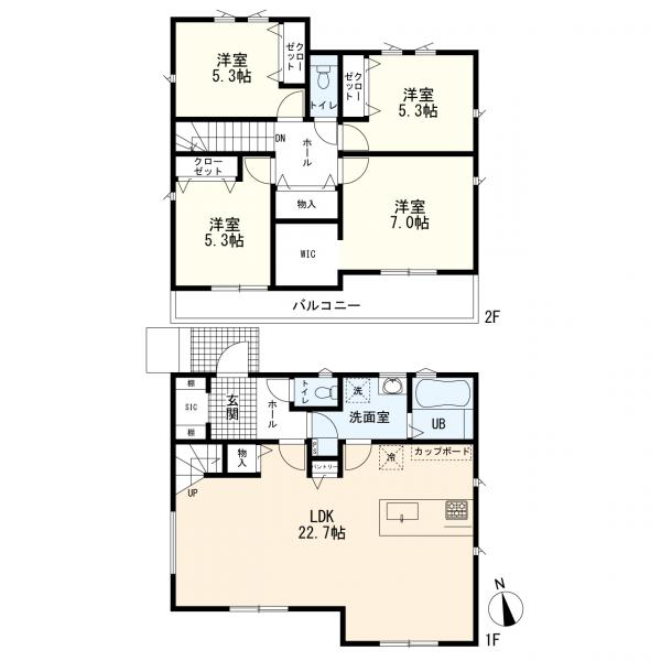 - トイレ2ヶ所,システムキッチン,カウンターキッチン,ウォークインクローゼット