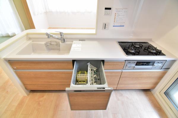 その他画像:食器洗浄乾燥機を標準装備。作動中は他の家事を並行して進めることができ、家事の時短と負担軽減につながります。高温、高圧水流で洗浄するため、除菌・消臭効果が期待でき、衛生面での安心感が高まります。また、手荒れの心配もなくなります。