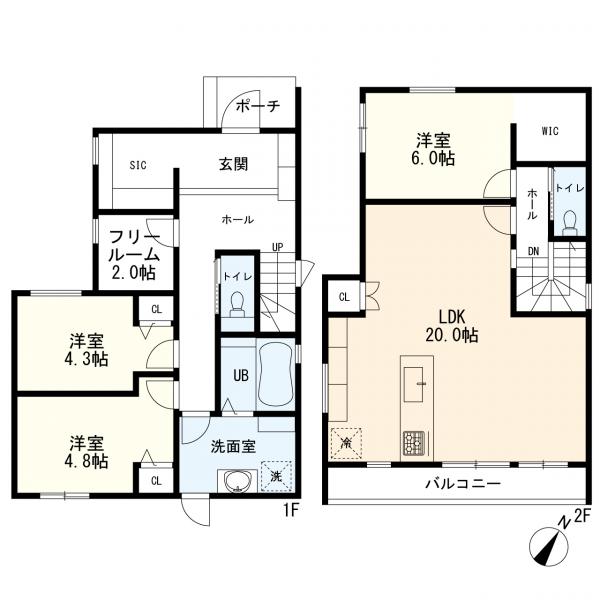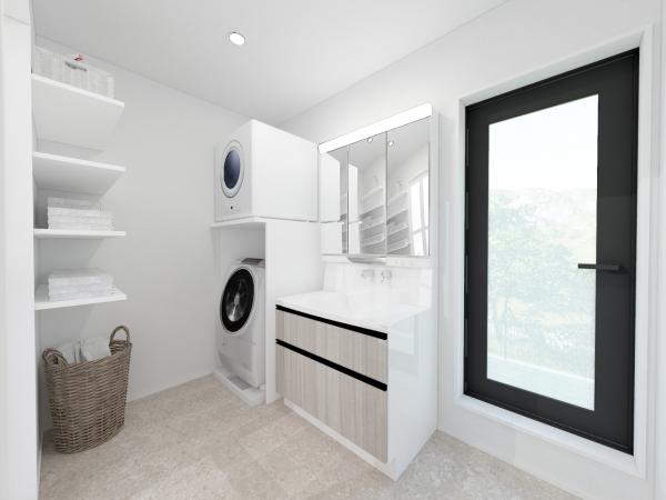 閑静な住宅地、都市ガス、LDK20帖以上、システムキッチン、対面式キッチン、食器洗乾燥機、追焚き給湯、浴室に窓、浴室暖房、浴室乾燥機、シャワー付き洗面化粧台、全居室収納スペース、ウォークインクローゼット、シューズクローク、トイレ2ヶ所、温水洗浄便座、バルコニー、全居室フローリング、室内物干し、床下収納、Low-Eガラス、複層ガラス、宅配ボックス、年内入居可、TVインターホン、照明器具、24時間換気システム、省エネラベル、2階建