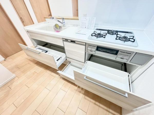 - 追焚機能,浴室乾燥機,システムキッチン,カウンターキッチン,浄水器,トランクルーム,給湯,室内洗濯機置場,エレベーター,照明器具,宅配BOX,バイク置き場,駐輪場
