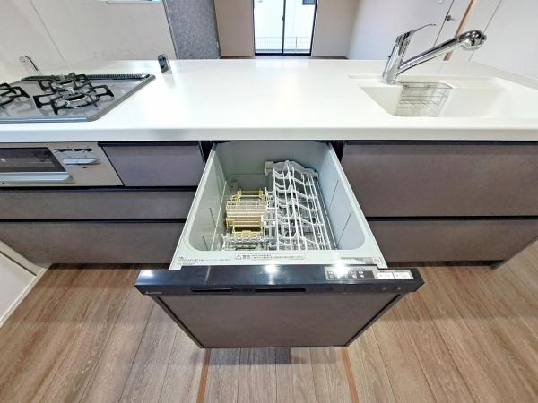 その他画像:食器洗浄乾燥機を標準装備。作動中は他の家事を並行して進めることができ、家事の時短と負担軽減につながります。高温、高圧水流で洗浄するため、除菌・消臭効果が期待でき、衛生面での安心感が高まります。また、手荒れの心配もなくなります。