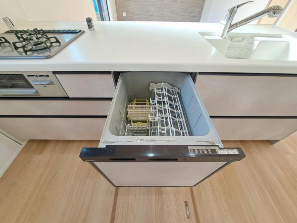 その他画像:【2号棟】食器洗浄乾燥機を標準装備。作動中は他の家事を並行して進めることができ、家事の時短と負担軽減につながります。高温、高圧水流で洗浄するため、除菌・消臭効果が期待でき、衛生面での安心感が高まります。また、手荒れの心配もなくなります。
