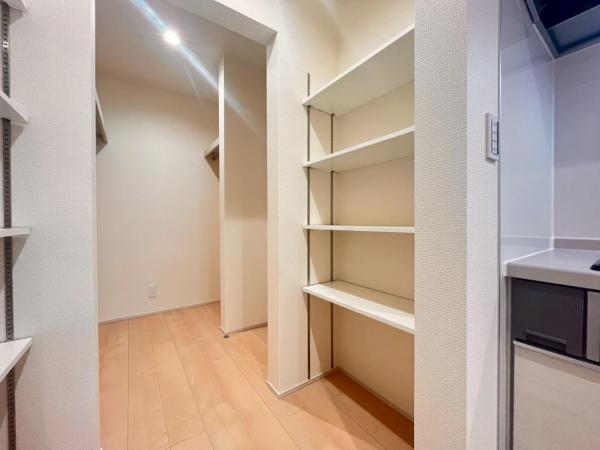 その他画像:食品や食器を収納出来るウォークインタイプのパントリーです。乱雑になりがちな調理家電などをスッキリまとめる事が出来ます。