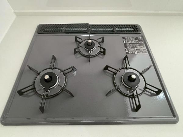 キッチン:料理の幅を拡げてくれる三口コンロの使いやすいシステムキッチンを採用。