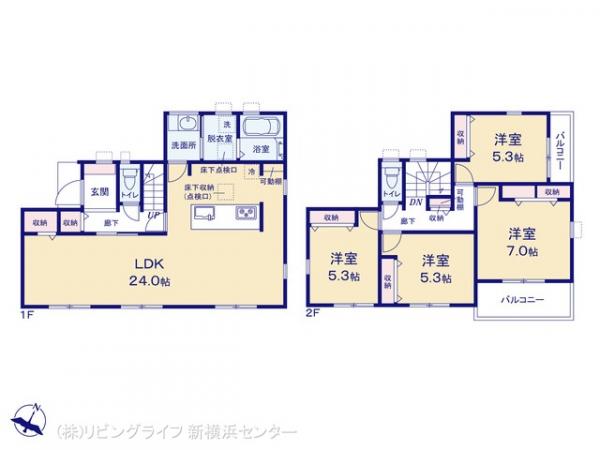 - トイレ2ヶ所,システムキッチン,カウンターキッチン,床下収納