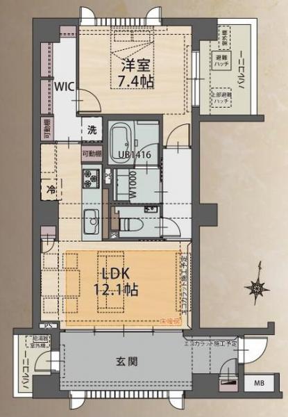 - 追焚機能,浴室乾燥機,システムキッチン,浄水器,ウォークインクローゼット,エレベーター,宅配BOX,エアコン,床暖房,CATV,インターネット,オートロック,防犯カメラ,二面バルコニー,バイク置き場,駐輪場