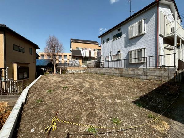 閑静な住宅地、陽当り良好、セットバック要、南面道路、低層住居専用地域、都市ガス、上水道、下水道、建築条件なし、更地渡し、建物プラン例有り、平坦地、小学校徒歩10分以内