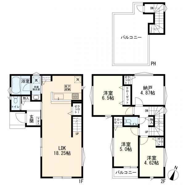 LDK15帖以上、リビングイン階段、24時間換気システム、システムキッチン、対面式キッチン、食器洗乾燥機、浄水器、浴室に窓、浴室暖房、浴室乾燥機、温水洗浄便座、トイレ2ヶ所、シャワー付き洗面化粧台、全居室収納スペース、納戸、バルコニー、TVインターホン、Low-Eガラス、前面道路6m以上