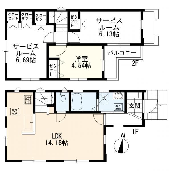 • その他画像:1区画建物参考プラン(1LDK+2S)建物参考価格: 1300万(税込) 建物面積:69.34平米