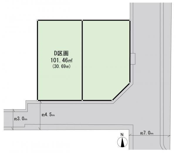 陽当り良好、南面道路、前面道路6m以上(E号棟)、角地(E号棟)、整形地(D号棟)、2沿線以上利用可、都市ガス、上水道、下水道、電気、小学校徒歩10分以内、整備された歩道、市街地が近い、建物プラン例有り