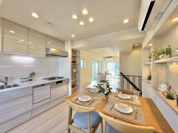 角部屋、最上階、陽当り良好、通風良好、眺望良好、システムキッチン、給湯、シャワー、バストイレ別、室内洗濯機置場、独立洗面台、パウダールーム、収納、全居室収納スペース、洗面室収納、シューズクローク、バルコニー、2面以上バルコニー、南面バルコニー、管理人巡回、南向き、2面採光、3面採光、エアコン、エアコン2台以上、LDK15帖以上、リノベーション、内装リフォーム、リフォーム済み、即引渡可、メゾネット、食器洗乾燥機、追焚き給湯、浴室乾燥機、照明器具、外観タイル張り